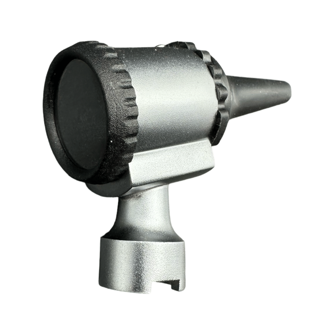 Otoscope Head: Provides bright, clear illumination of the ear canal and tympanic membrane. Includes a removable magnifying lens for introducing instruments.